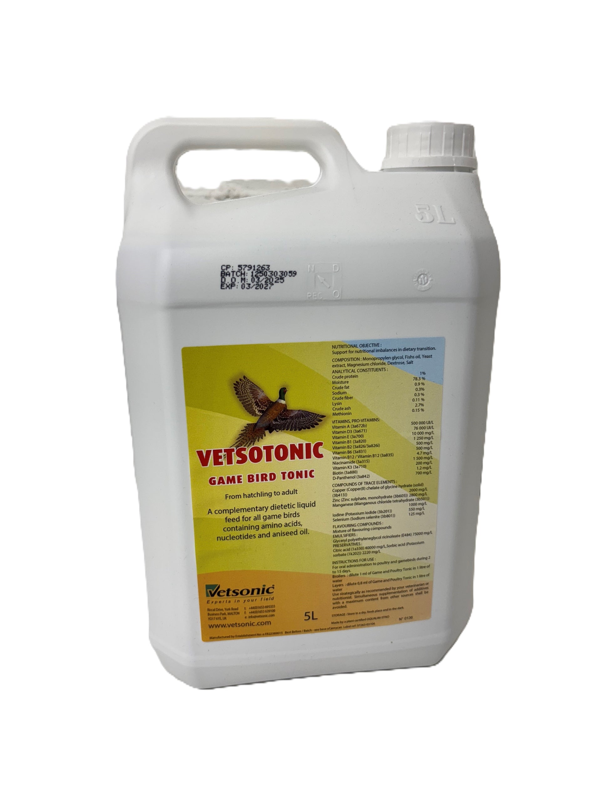 Complex vitamin supplement for all game birds, containing 9 essential vitamins.  Aniseed flavour.